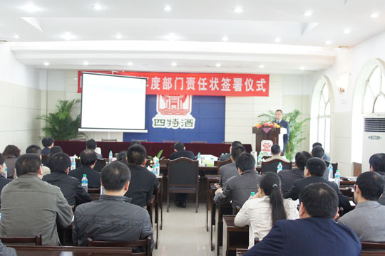 3月27日上午10時(shí),四特酒2012年部門(mén)責(zé)任狀簽署儀式在公司含弘樓9樓多功能會(huì)議廳舉行。廖昶董事長(zhǎng)與各副總出席簽署儀式,共同見(jiàn)證了24位部門(mén)負(fù)責(zé)人簽署部門(mén)2012年度目標(biāo)責(zé)任狀。