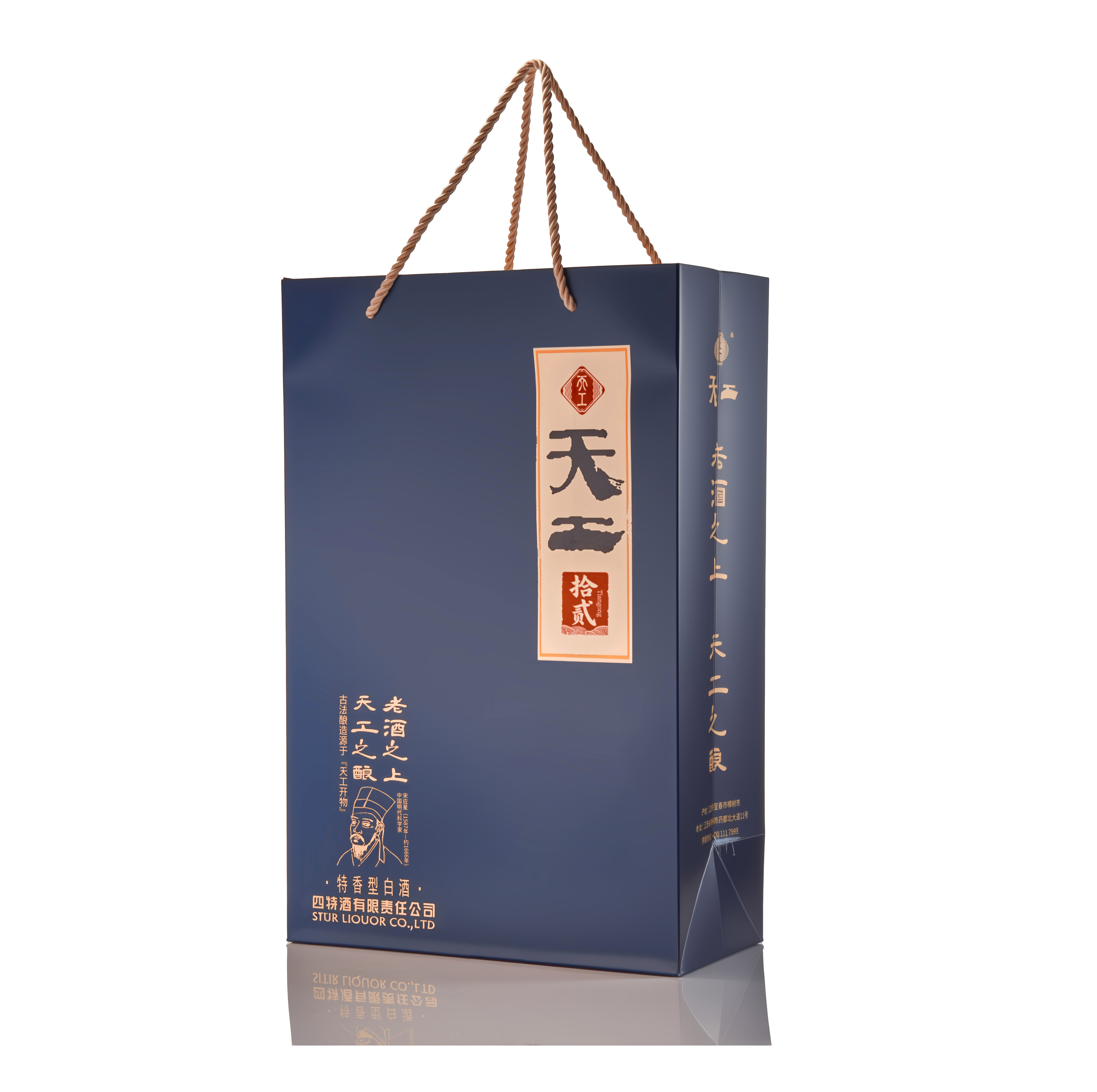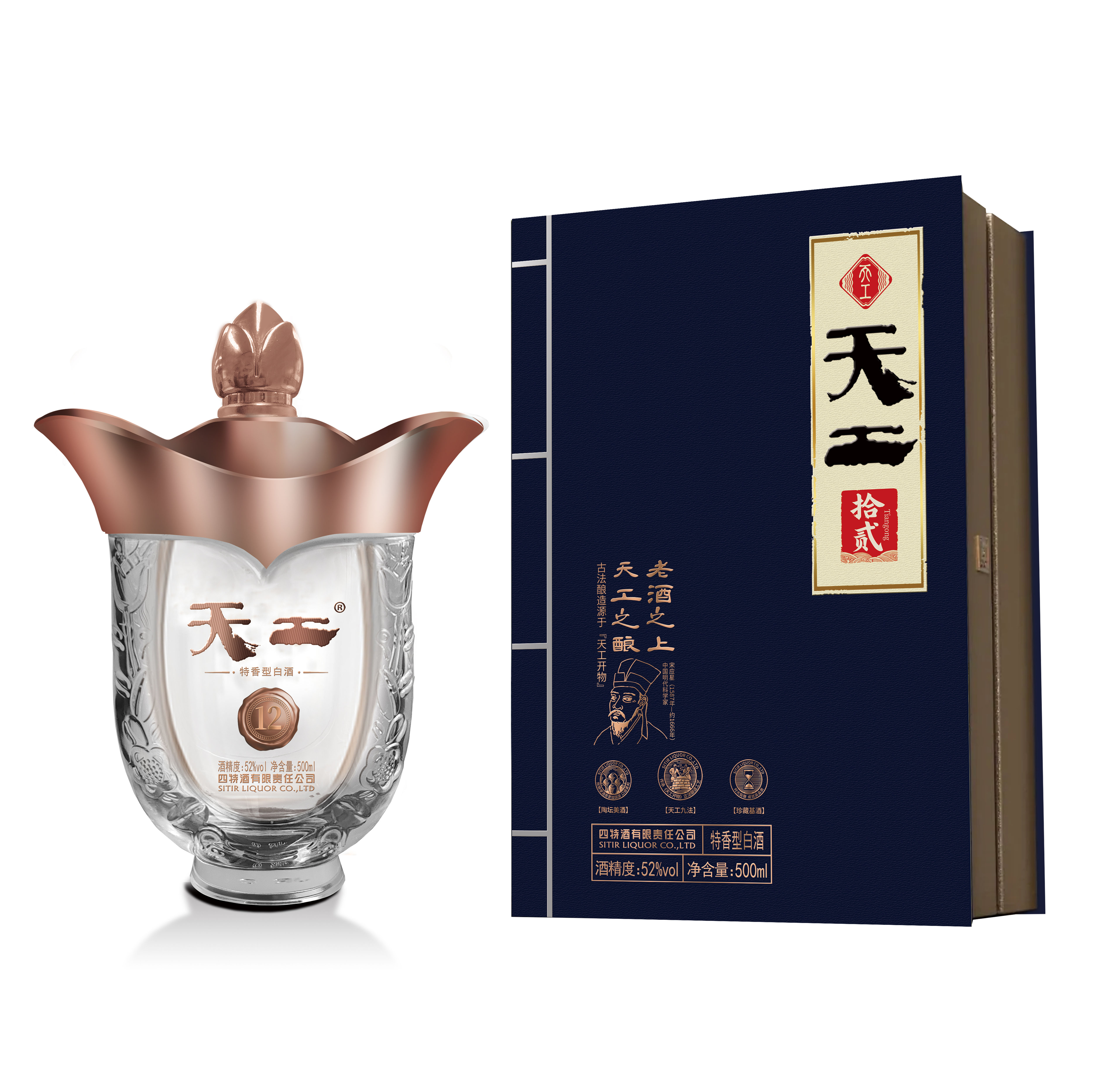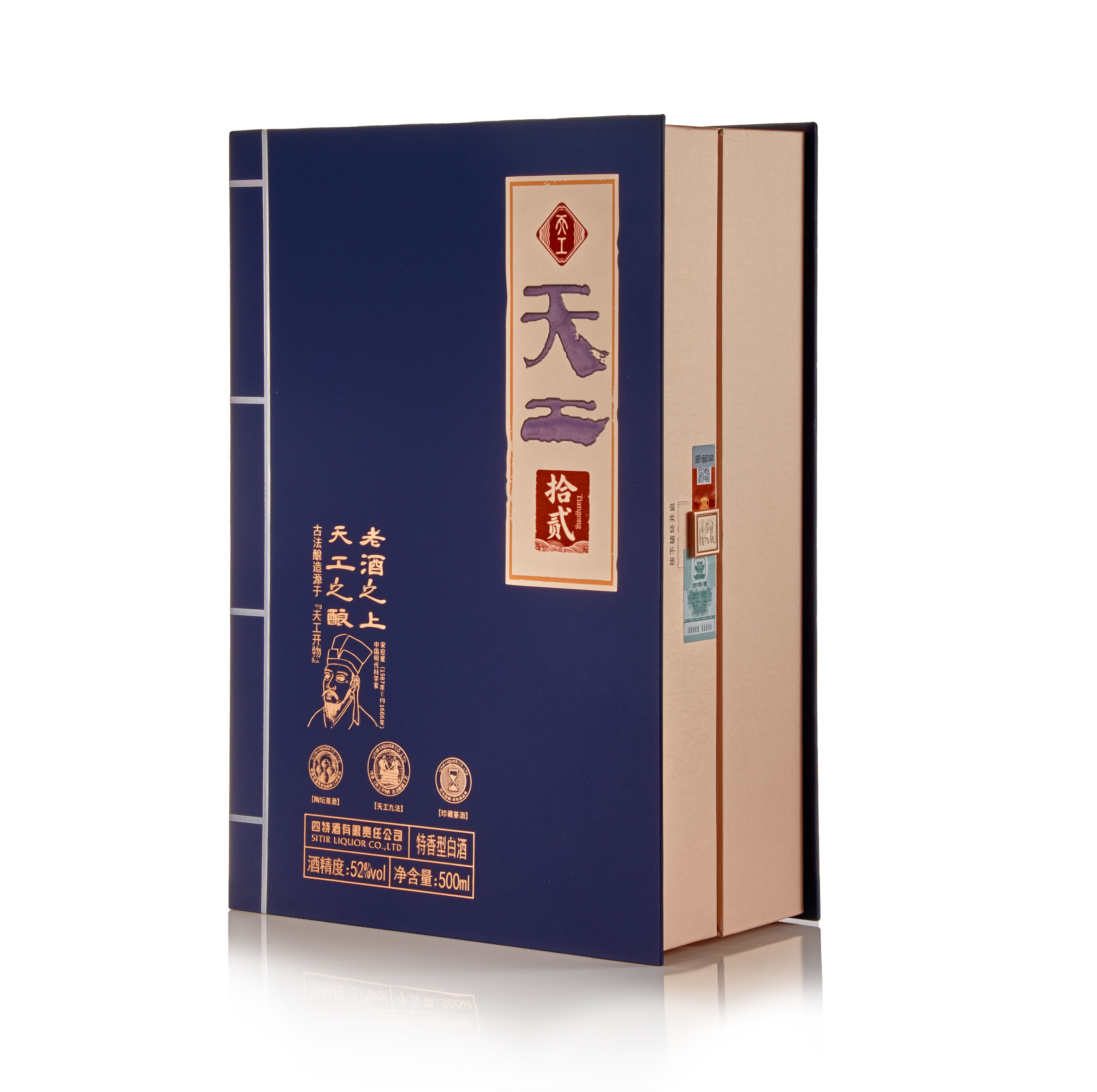 天工·拾貳,以古籍《天工開物》為設計靈感,既蘊含復古韻味又富有文化內涵,凝聚工匠之心及古人智慧于一體的高端年份佳釀。經典玉蘭花器型,傳遞君子氣韻,配以玫瑰金色披肩,寓意“金蘭之交”的至誠情誼,古靛青主色調,深藏“青出于藍”哲思,顯大家風范。酒體色澤微黃透明,聞香典雅舒適,入口綿甜甘潤,醇厚細膩、香味諧調、回甜凈爽、余味悠長、特香風格典型。